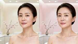お客様は、施術後の肌の明るさとフェイスラインの変化に非常に驚かれていました。施術前に抱えていたくすみが軽減し、肌全体に健康的な艶が増したことで、より若々しい印象を受けられたようです。特に目元のリフトアップを実感されており、施術前に気になっていた目尻のシワが薄くなり、位置も上がってきたことを喜んでいらっしゃいました。
